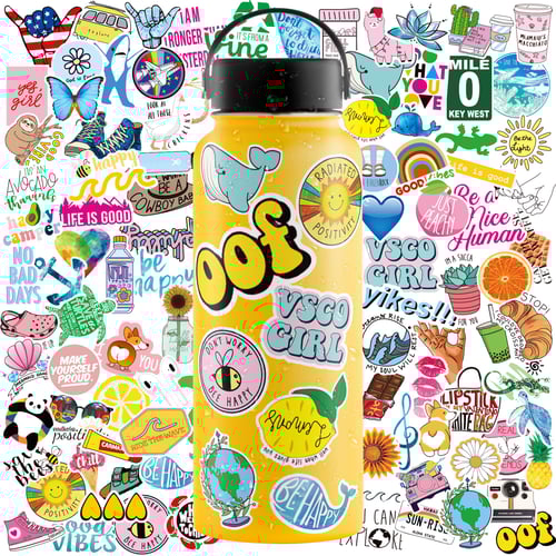 The stickers are marketed as vinyl and waterproof, which holds up reasonably well in practice. Sticking them on a water bottle and running it through a normal hand-wash holds fine. Dishwasher cycles are a different story — the edges can lift after repeated high-heat exposure, so stick to hand-washing anything you decorate. On laptops and phone cases, they sit flat and don't peel easily under normal daily handling.