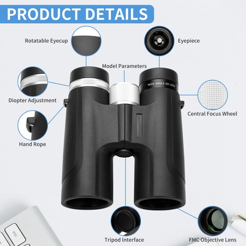 Adorrgon 12x42 HD Binoculars for Adults High Powered with Phone Adapter, Tripod and Tripod Adapter - Large View Binoculars with Clear Low Light Vision - Binocular for Bird Watching Cruise Travel
