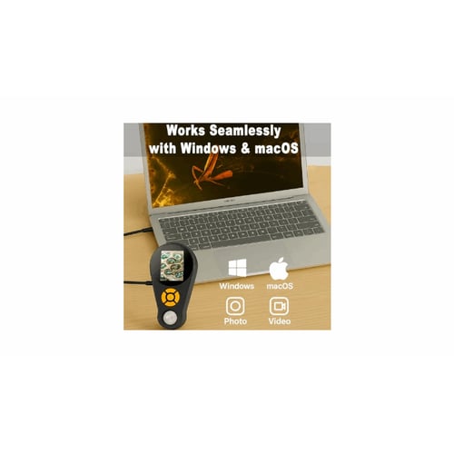 A: It is compatible with Windows and Mac OS and typically recognized as a standard USB camera device. Free software like AmScope works well, or it can be used with any webcam-compatible application.
