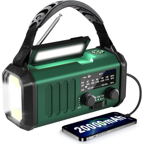 Emergency Radio-NOAA Weather Radio 20000mAh/74000mWh with AM/FM Portable Solar Panel/Hand Crank/AC Input Rechargeable Battery and Flashlight SOS Siren Lamp for Camping Indoor/Outdoor Emergencies