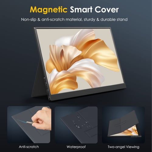 The included smart cover doubles as a stand, and unlike some afterthought folio designs, this one actually works. It holds the monitor at a usable angle and feels stable on a desk. It's the kind of feature that sounds minor until you've wrestled with a separate stand on a cramped airplane tray table. Having it bundled rather than sold separately is a genuinely good call by MNN.