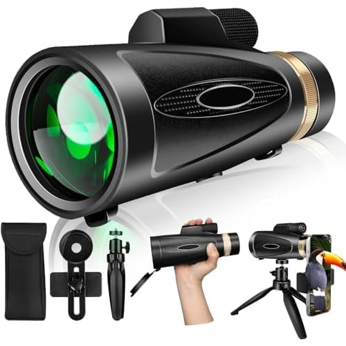 This is a budget-tier monocular that bundles in a phone adapter and a small tripod — and at its price point, that bundle is genuinely the selling point. The 100mm objective lens is large enough to gather decent light, which helps during dawn and dusk wildlife watching or casual stargazing. The phone adapter lets you snap digiscoped photos without buying extra accessories, which beginners will appreciate.