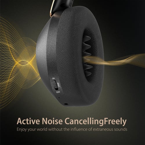 TAGRY Hybrid Active Noise Cancelling Headphones 100H Playtime Wireless Over Ear Bluetooth Headphone with Fast Charging Hi-Res Audio Comfort Earcups Headsets for Travel Home Office Phone PC Black