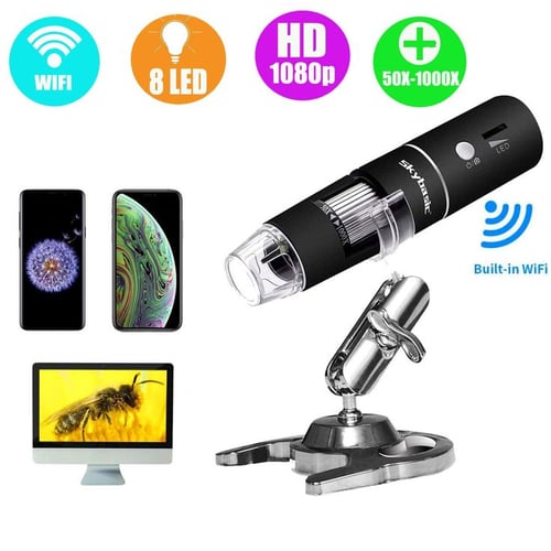 Wireless Digital Microscope, Skybasic 50X-1000X Magnification WiFi Portable Handheld Microscopes with Adjustable Stand HD USB Microscope Camera Compatible with iPhone Android iPad Windows Mac Computer